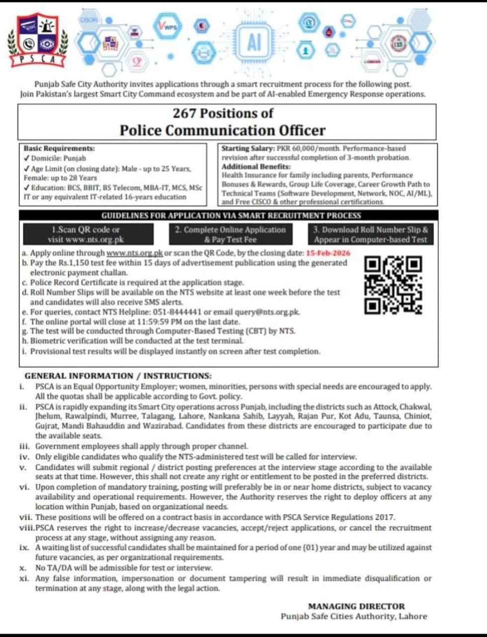 This makes these posts highly suitable for candidates seeking PSCA Jobs for IT Graduates and Police Communication Officer Jobs 2026.